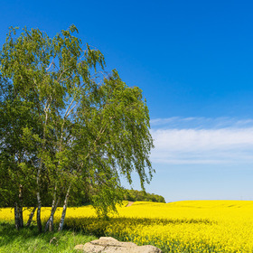 baum, raps, feld, … ein baum an einem rapsfeld.