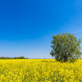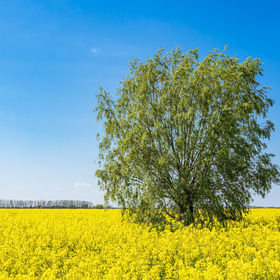 gelb, rapsfeld, feldra … ein baum am rapsfeld.