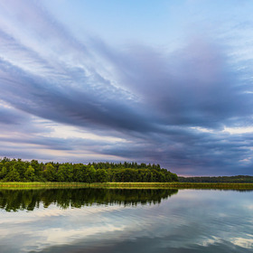 wald, spiegelung, wolken