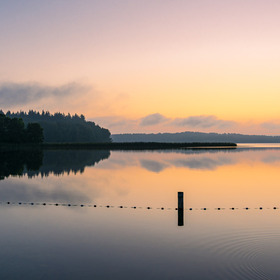 olken, spiegelung, blau, … seeufer mit spiegelung.